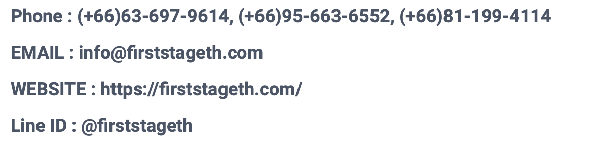 Contact Us FIRST STAGE Dive Center Legal Company : บริษัท กรุงเทพ สคูบา อินเตอร์เนชั่นแนล จํากัดAddress : เลขที่ 8/29 อาคารเดอะ รีเซิร์ฟ เอ ช้ันที่ 2 ห้องเลขที่ 8/29 ถนนพระรามที่ 1 แขวงวังใหม่ เขตปทุมวัน กรุงเทพมหานคร 10330